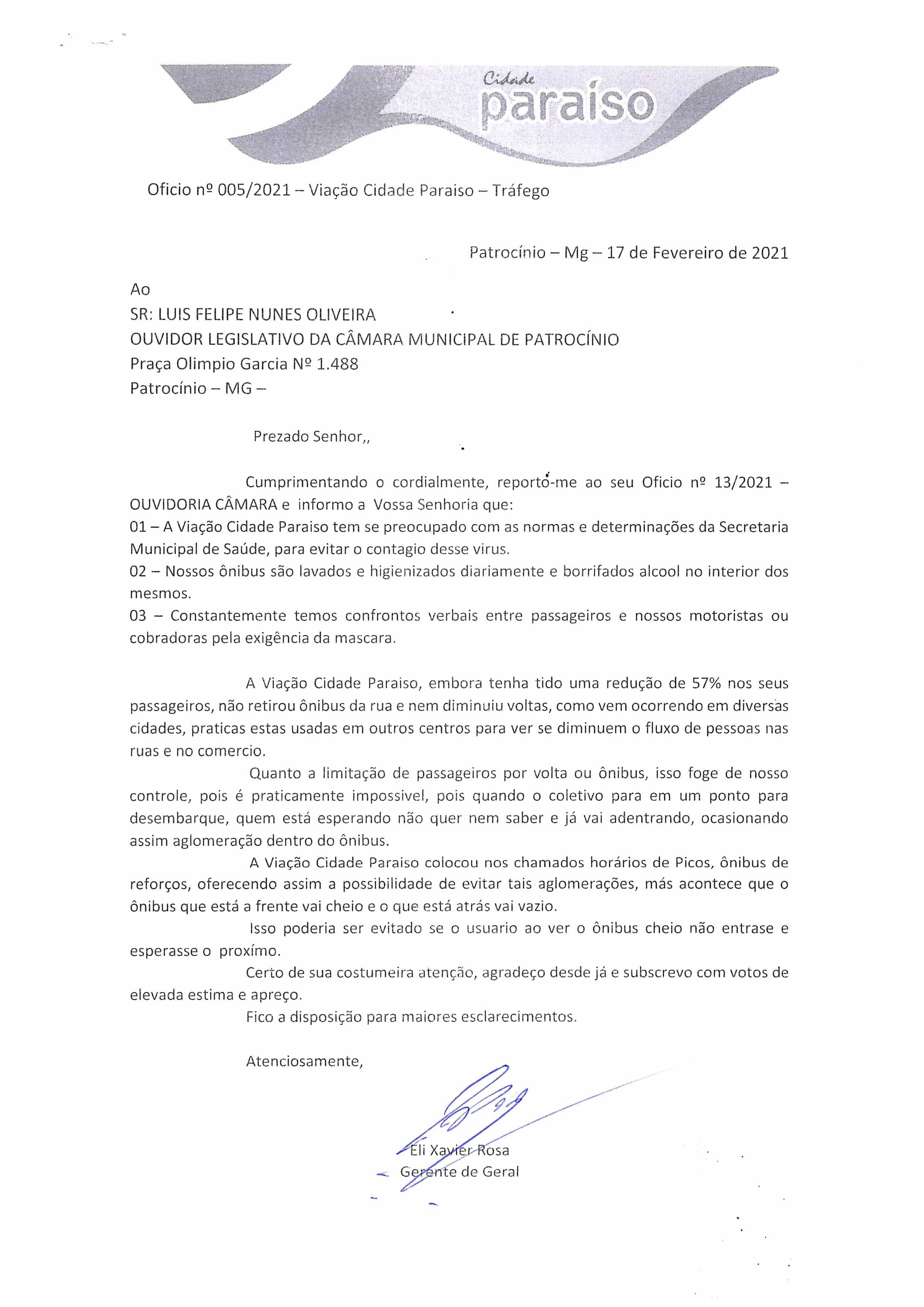 Ofício Viação Cidade Paraíso