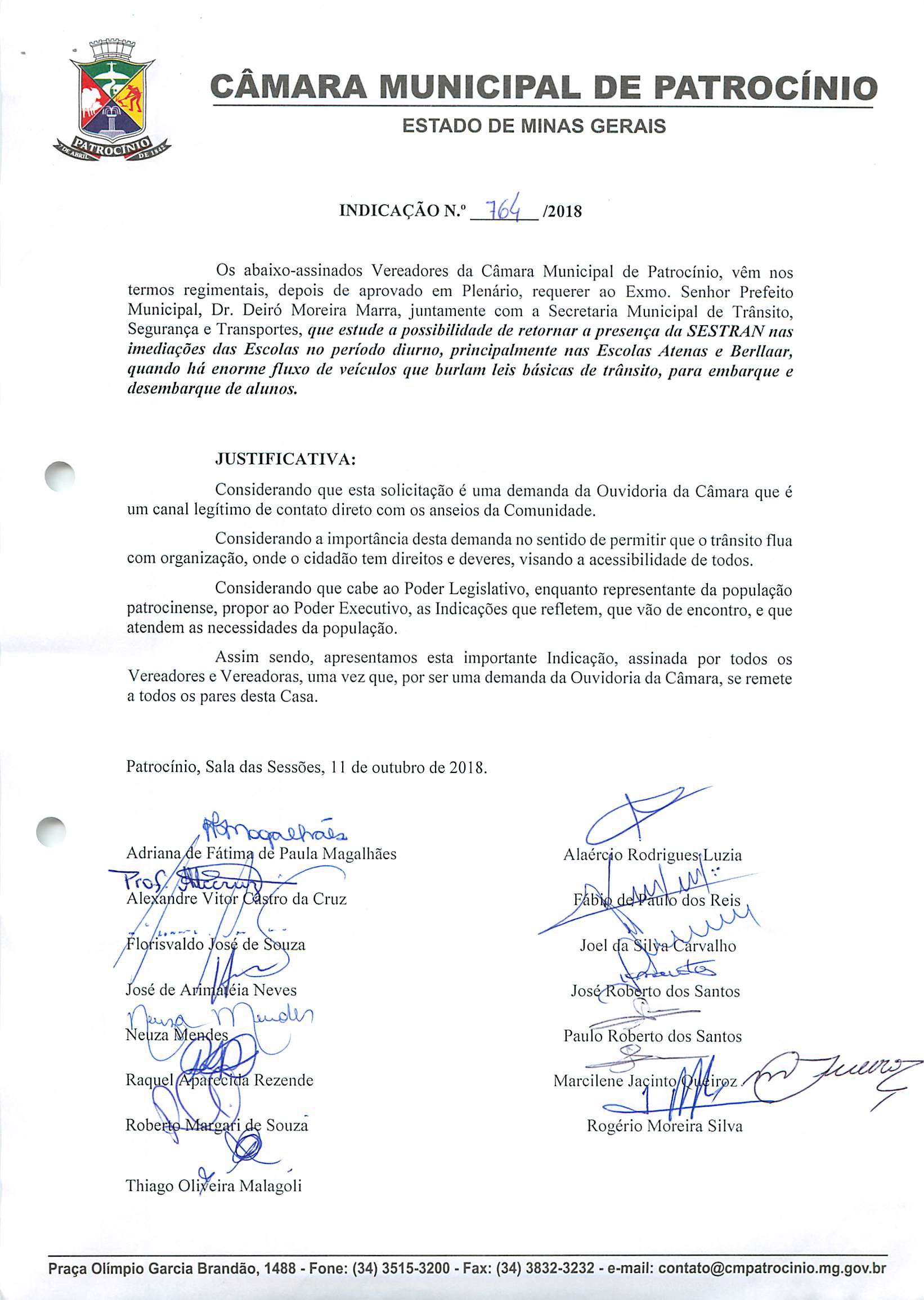 764 - Pedindo retorno Sestran porta colégio Atenas